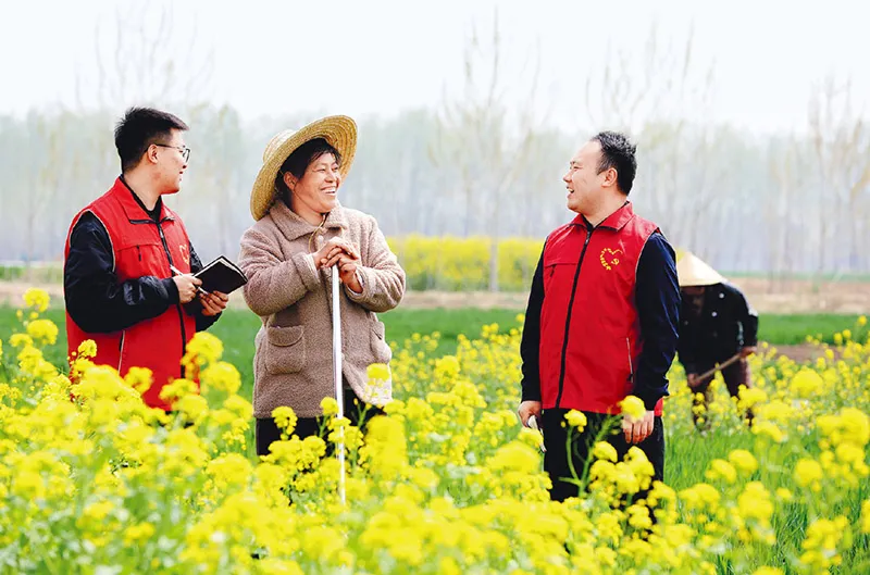 各地區(qū)以開展深入貫徹中央八項(xiàng)規(guī)定精神學(xué)習(xí)教育為契機(jī),組織力量深入基層一線、田間地頭走訪調(diào)研,了解群眾“急難愁盼”問題,將作風(fēng)建設(shè)成果切實(shí)轉(zhuǎn)化為為民服務(wù)的實(shí)際成效。圖為2025年4月8日,山東省臨沂市郯城縣黨員志愿者在田間了解春季農(nóng)業(yè)生產(chǎn)及鄉(xiāng)村產(chǎn)業(yè)發(fā)展情況。 視覺中國(guó) 張春雷/攝